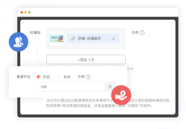 符合条件申请成为店长后,可以代理主商城的商品放到自己的小店中售卖,赚取差价利润或整单利润,邀请好友成为店长还可获得奖励金。