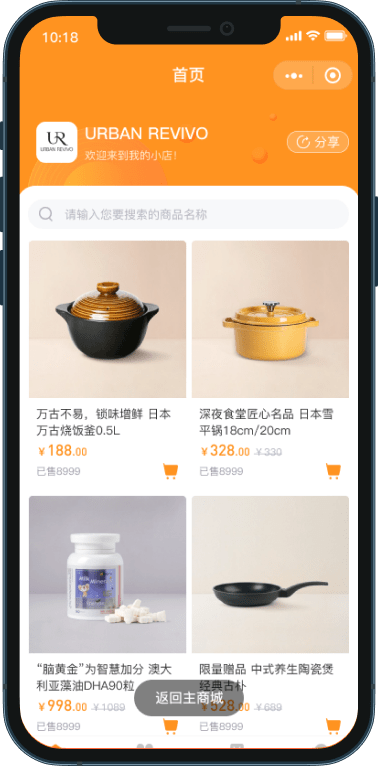 可在代理小店体系下配置各商品的代理状态和代理价格,店长从主商城中获取可代理的商品。
