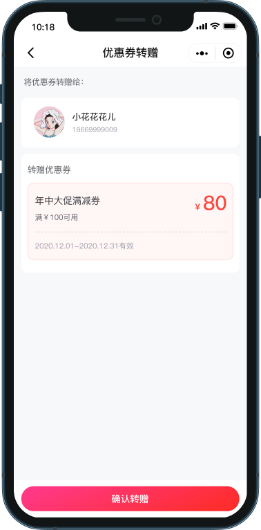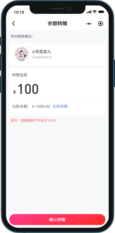 商家可根据手机号、会员昵称、姓名、时间、额度等筛选查看详细的转赠记录,方便快捷。