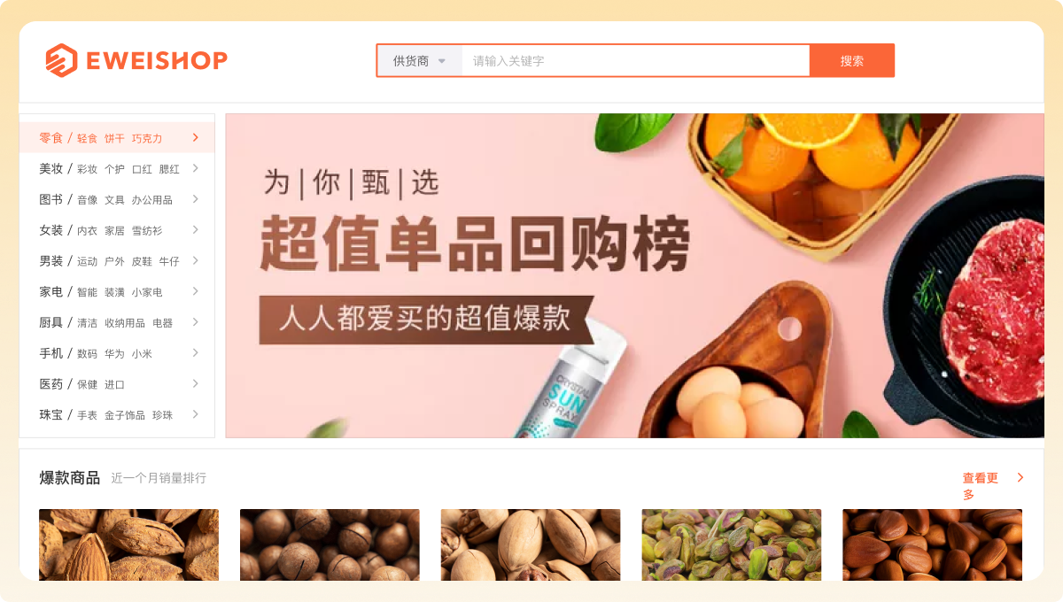 平台搭建带货市场后,可入驻和管理供货商和带货商,帮助用户解决货源和推广问题。