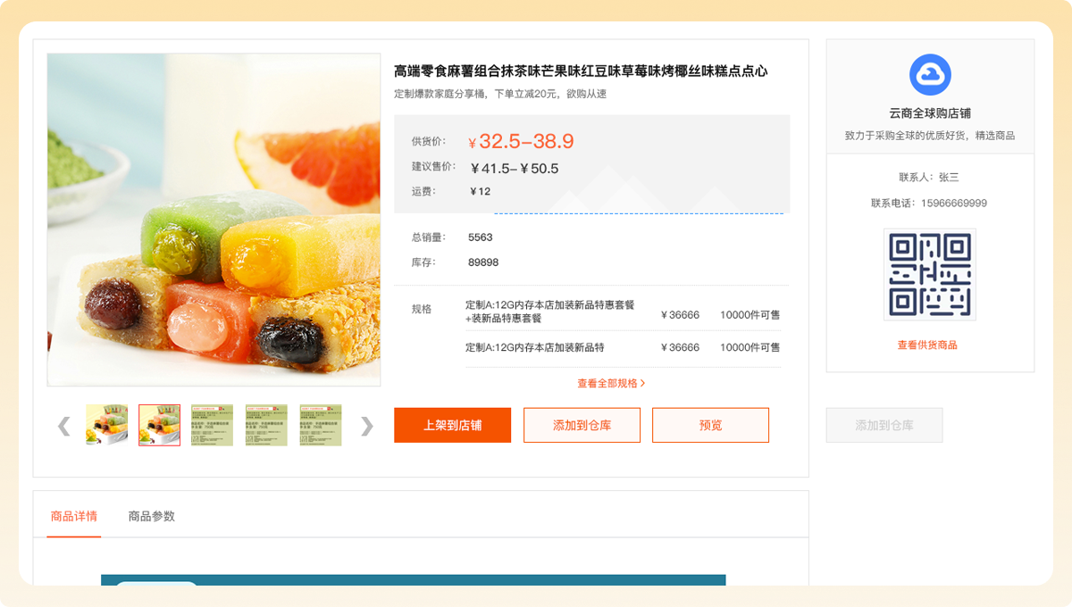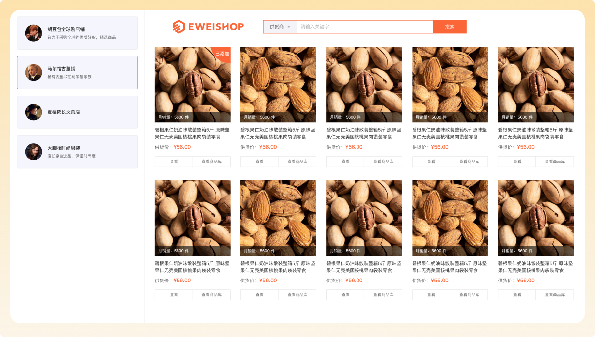 店铺成为带货商后,可从带货市场获取供货商品,上架到自己的店铺并出售。