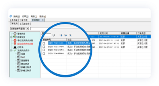网店管家软件可同步鲸尾发货订单的原始单号、成交时间、订单类型、发货时间、收件人、发货单号及发货方式